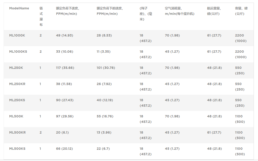 550磅(250公斤)-2200磅(1000公斤)起重能力;服務(wù)于工業(yè)超過25年,堅固可靠的MLK系列共有許多可互換部件的共同設(shè)計。